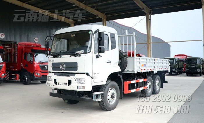 DFV2163GP6D1六驅越野載貨汽車,采用東風康明斯210馬力發動機,6*6分時驅動,貨箱長4.8米,可承載最多10噸貨物,箱板三面可開啟,方便貨物的裝卸。主要用于城鎮鄉村及惡劣路況地區下運輸貨物使用。