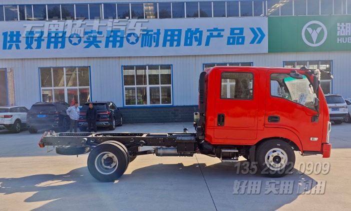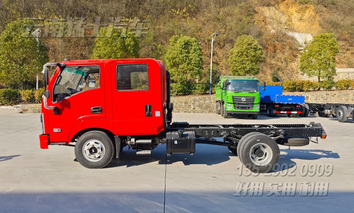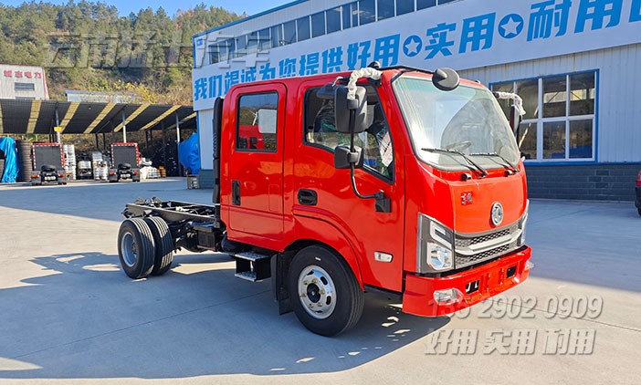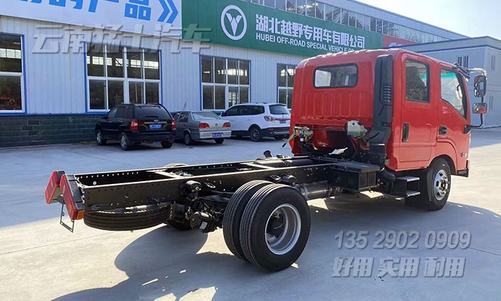 4*4東風小輕卡雙排座底盤(可選4*2驅動),4*4適合于惡劣路段下使用,越野性能強;4*2適合于城鎮道路下使用,輕便節能。可根據客戶需求進行改裝加裝。
