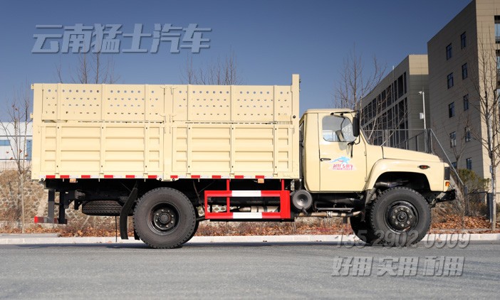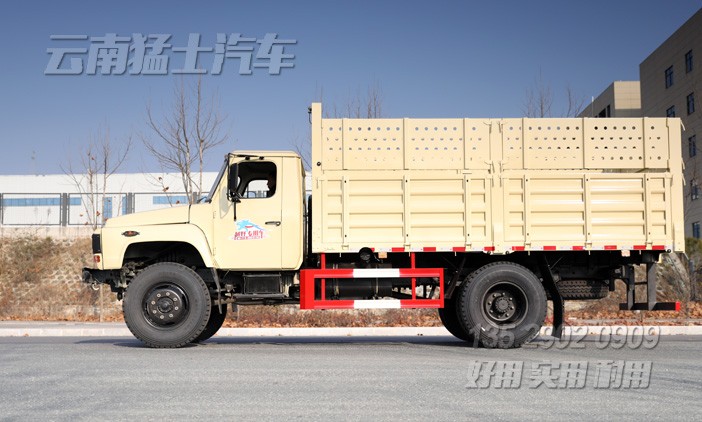 EQ1093F是東風公司開發的一款四驅越野型載貨車,我公司為滿足客戶需求,在多方位測試后將該車貨箱進行了改造,屬于EQ1093的升級款。貨箱加長加高,可以裝載更多的貨物。