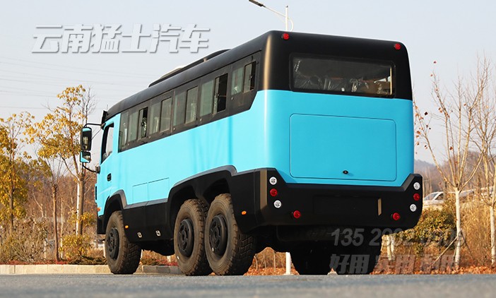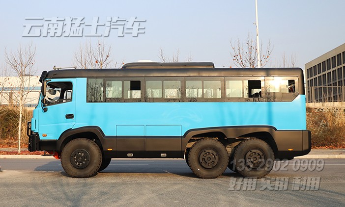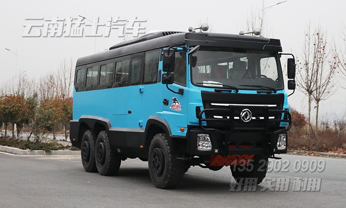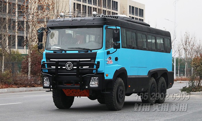 東風六驅25座越野型客車采用康明斯210馬力發動機,專用的越野輪胎,涉水越障都經過嚴格的檢測,是一款符合越野標準的專用型客車。