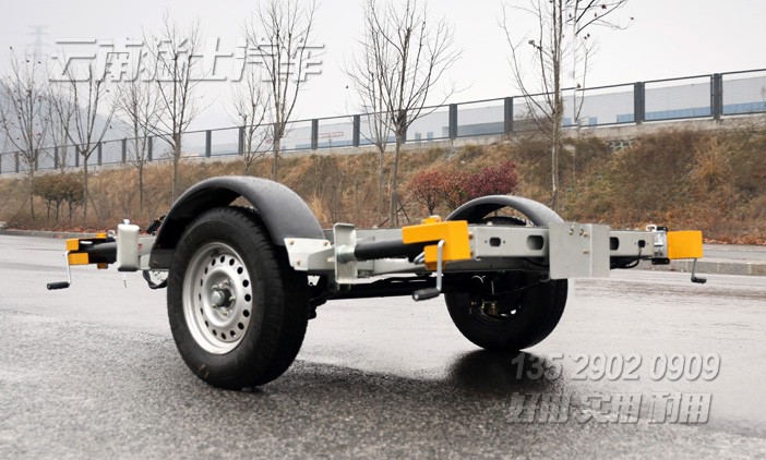 光伏板拖掛房車底盤是根據用戶需求而定制的一款專用拖掛底盤,該底盤采用電子剎車系統,電器件借助美式七芯插連接,預留有牌照燈和尾燈接線。前方牽引器在獨立駐車時可向上90°翻轉是該車最大的亮點。