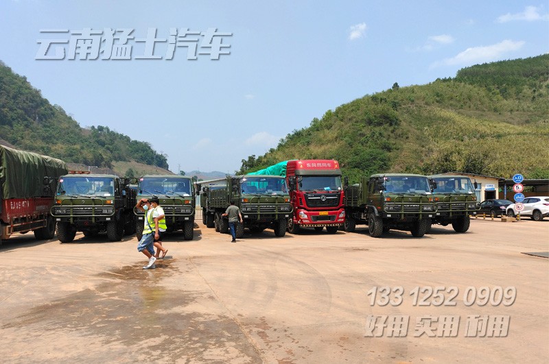 由張總訂購的批量EQ2102G東風六驅越野卡車,第一批10輛車經過4天的跋涉已經順利到達海關貨場。我們這里連續下了2天暴雨,但是駕駛員在路上一直天氣晴朗,也算是天公作美吧。