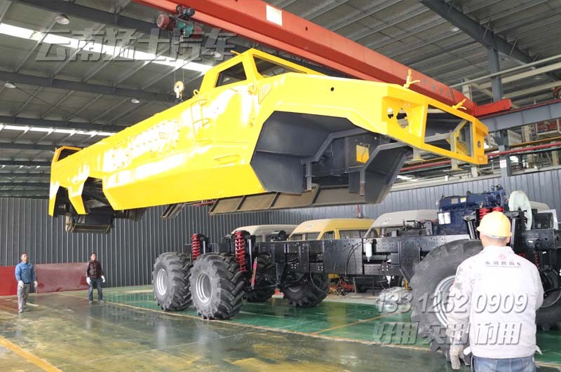 歷時2個月,車輛終于完工,客戶也來到我們生產現場驗車,達到滿意狀態后完成交付。由于該車過大,無法上公路行駛,所以我們將車輪及車上的附件拆掉后聯系物流半掛運輸,并將車輪及附件的安裝方法錄成視頻發給客戶,回去后方便安裝。