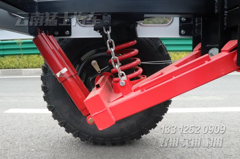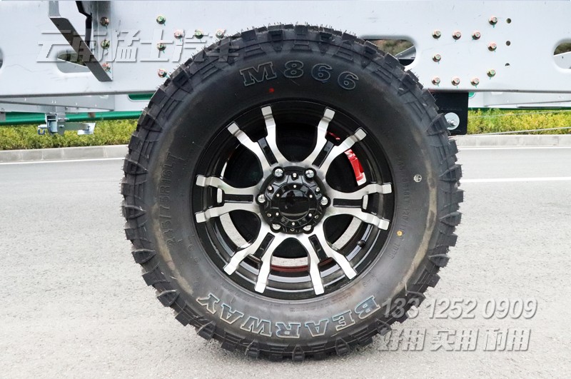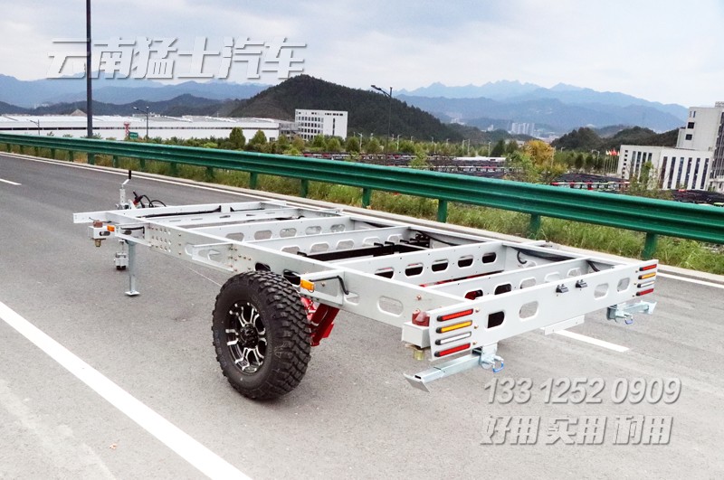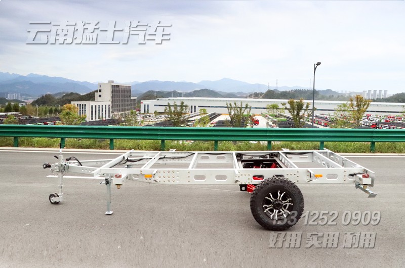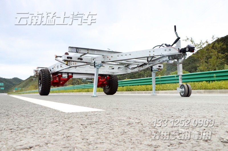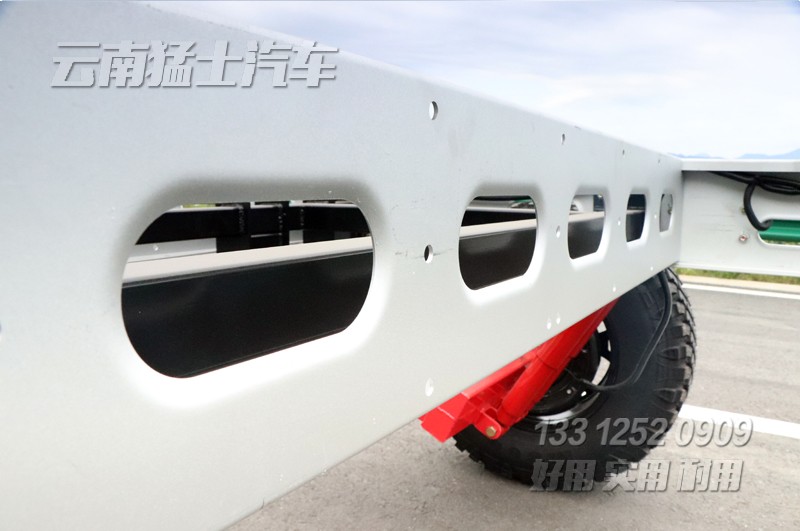 整套底盤采用510汽車大梁缸,既保證強度又保證韌性。所有的工藝孔,車架,橫梁,全部采用一次性沖壓成型,既減震,又增加自身強度。