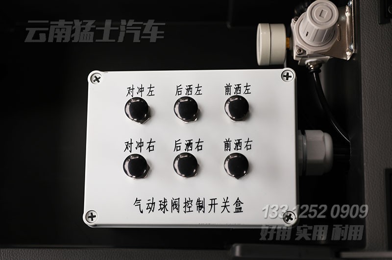 灑水作業(yè)功能有:后(左/右)高炮灑水、前對沖(左/右)沖洗、后灑沱(左/右)灑水、噴霧降塵(選裝)、前鴨嘴(左/右)灑水(選裝)、后對沖(左/右)沖洗(選裝)、后側(cè)噴(左/右)灑水(選裝)、頂部(左/右)綠化灑水(選裝)。