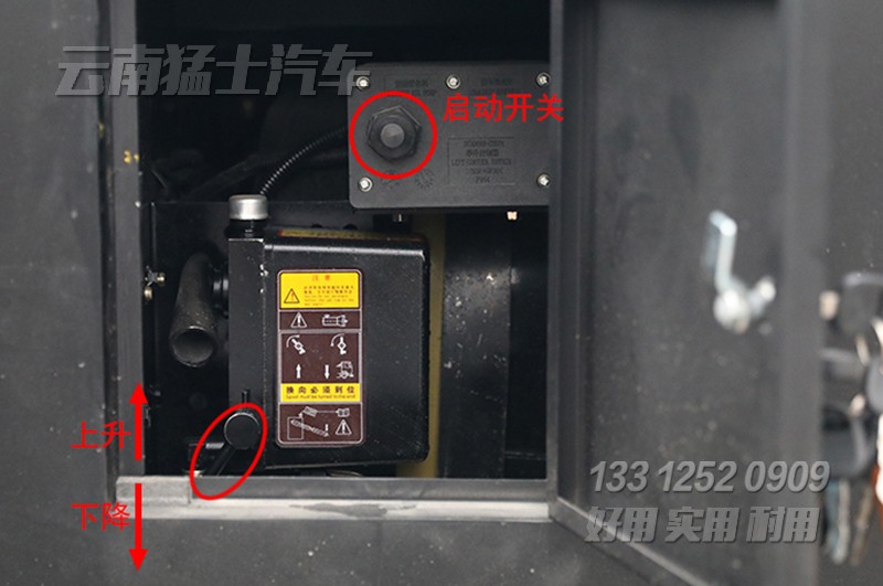 該備胎架采用電動液壓舉升機構,只需通過按鈕就可以完成舉升。