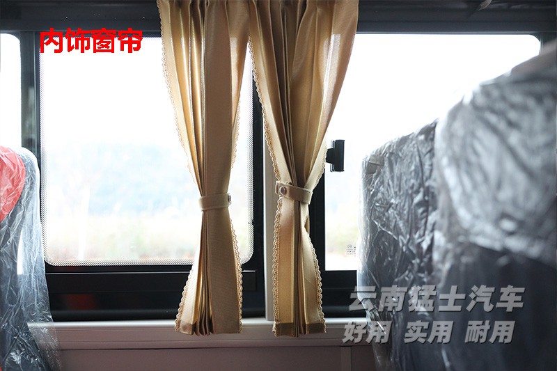 ? ? 門口處帶有扶手,方便乘客上下車。車內高1820mm,大部分乘客都可以直立行走,不壓抑。車內地板采用防滑鋁板,座椅采用皮革座椅,客車專用頂置空調,多媒體音響,為乘客和駕駛員提供更加舒適的駕乘感。設有應急逃生天窗和多個安全錘,為乘客和駕駛員的安全增加一層防線。該車可選裝窗簾、座椅扶手、駐車暖風、三點式安全帶、360全景影像等功能。