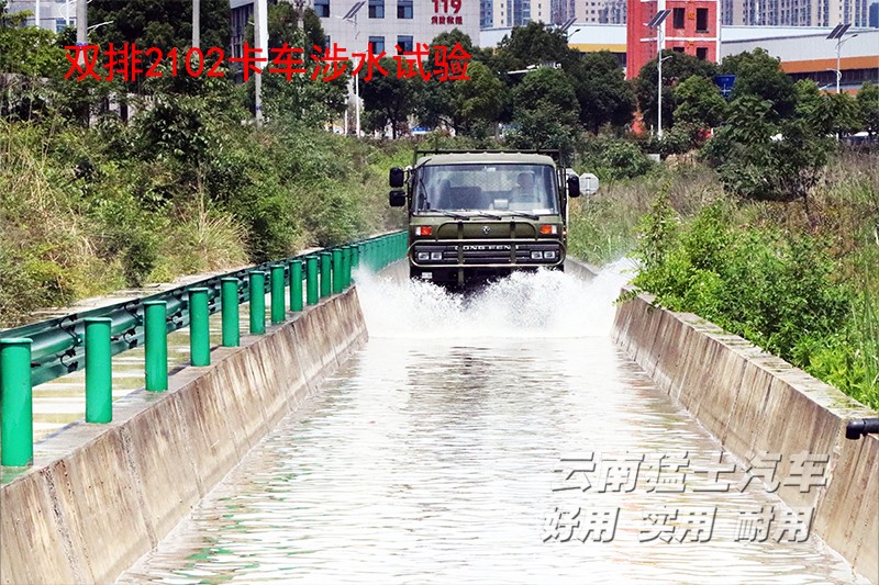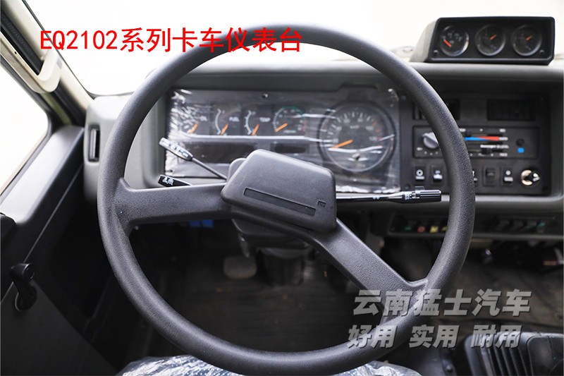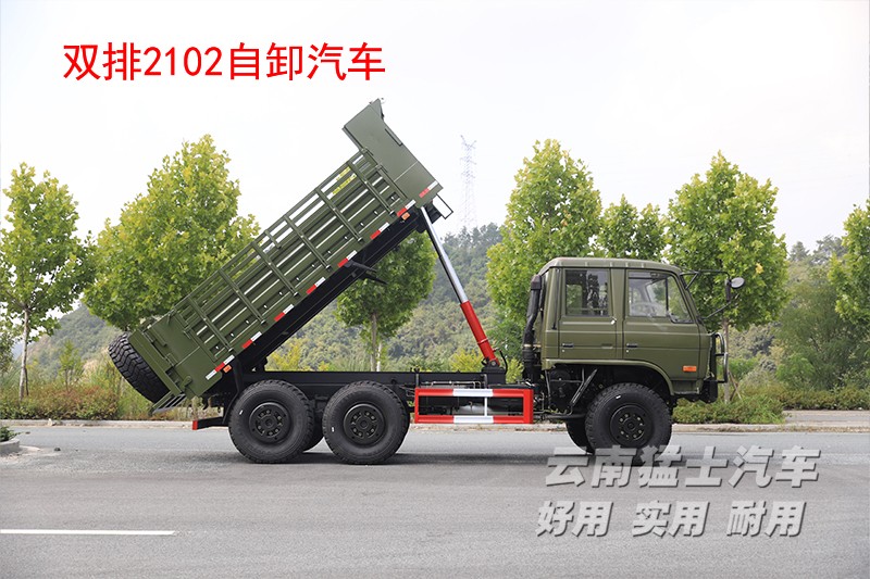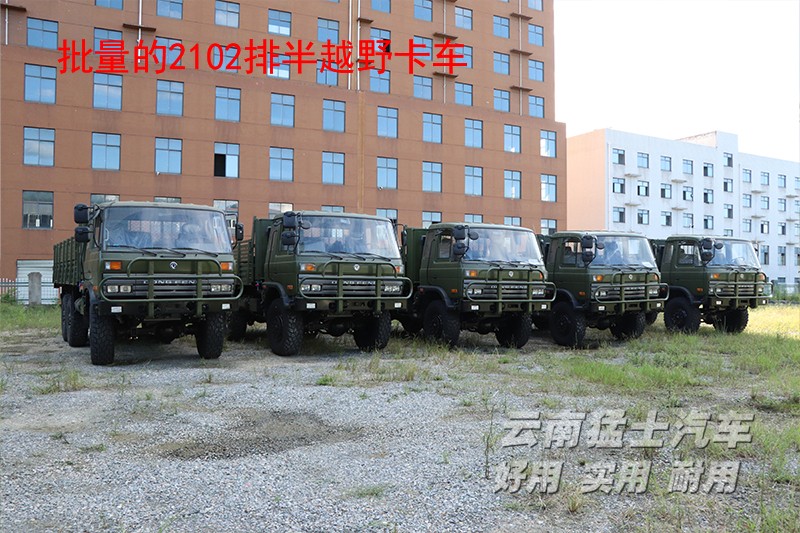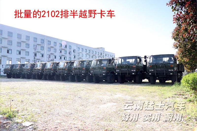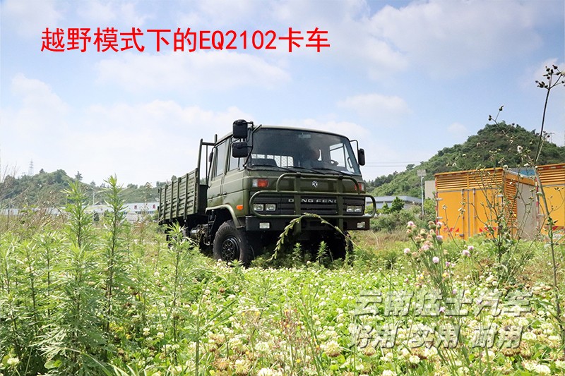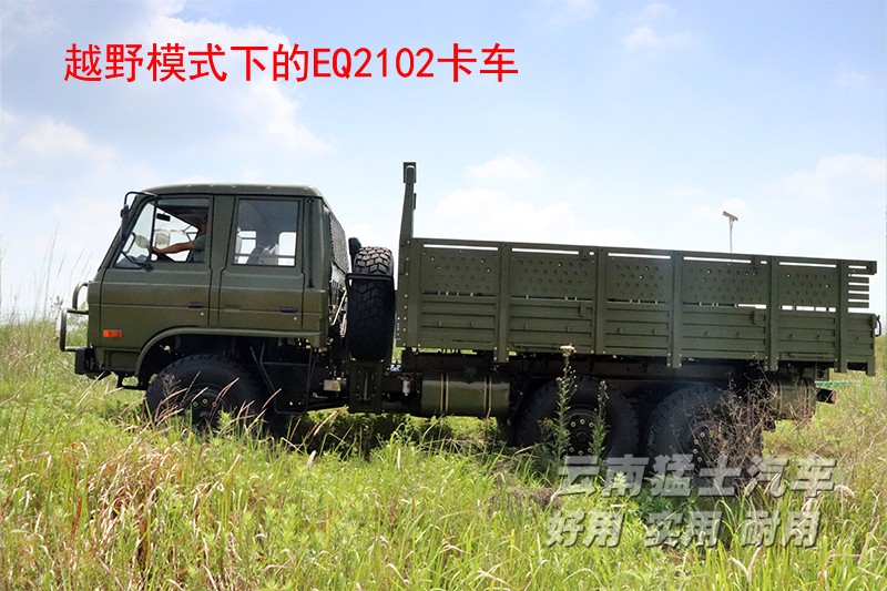 EQ2102系列是專門針對惡劣路況下行駛打造的一款六驅越野運輸車。車輛配備190~210馬力發動機,手動六檔變速器,前防護欄,12.5R20越野輪胎。駕駛室采用153款式,有著一排半盒雙排兩種規格。