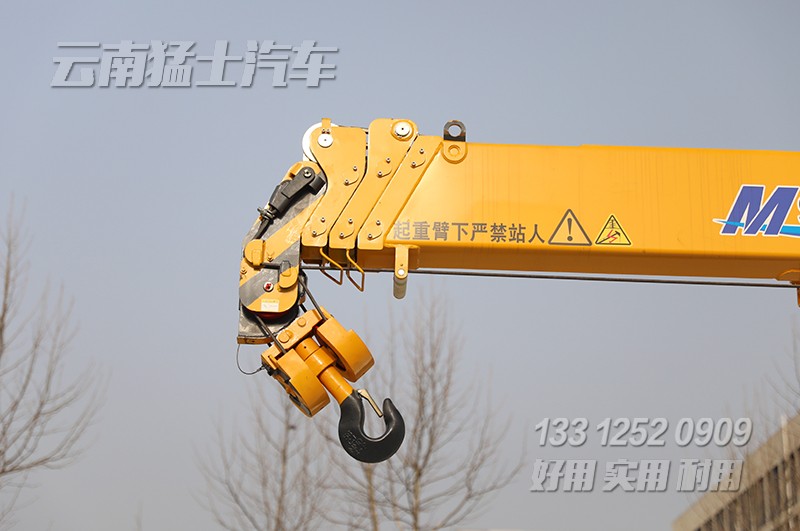第三步:拔出吊機底座上的固定銷,通過操縱桿先將吊鉤放出一部分,然后調整吊臂的長度、舉升高度、旋轉角度、吊鉤高度完成吊裝作業。