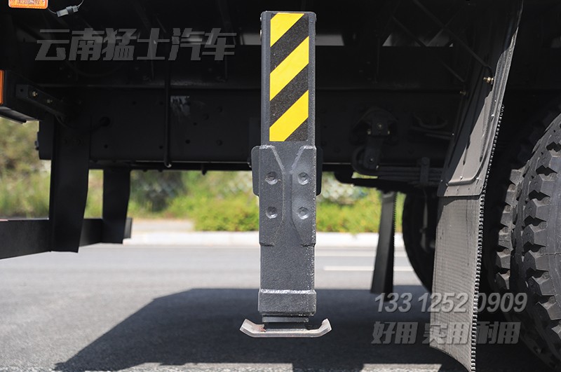 第二步:通過操縱桿將車輛的四個支腿伸出下降,穩固支撐在地面,四個支腿和車輪保持齊平,讓車輛處于水平狀態。