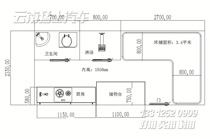 這款四驅房車不同于常規房車,該車采用成熟的東風越野卡車底盤,并加以改裝,將越野性能發揮到最大。房車內部空間寬敞,車內高度達2米,待在里面不會有壓抑感。房車內裝有大容量冰箱、柴油發電機、1000L清水箱,專為長期在戶外旅行和工作的人士打造。車輛配備有防翻滾支架、脫困板、絞盤、探照燈防空燈等設備,專為越野而定制。是一款非常適合出口國外使用的房車。