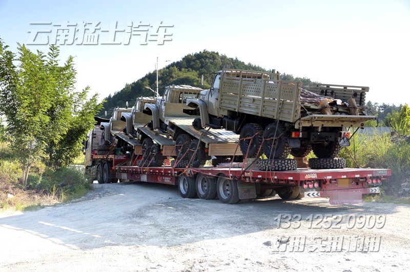 ? ? ? 去年年底一位客戶聯系到我公司,需要訂購一批卡車,主要在南美洲地區拉木頭和牲口使用,考慮到當地路況惡劣,以及實際載重,最終我公司推薦了東風EQ2082尖頭越野卡車以及輕卡倉柵車,該批車型全部采用全時驅動,在森林和峽谷地區均可行駛。該訂單于8月初正式簽訂7輛車的訂單合同并開始排產,由于海上運輸時間長,車輛在海上容易遭受海水侵蝕,在發車前我們對全車進行了噴臘處理。在行駛過程中產生高溫,會導致蠟面融化,所以我們采取了半掛背運的方式運輸到口岸。