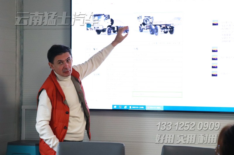 三位外國朋友對(duì)我公司的主打車型EQ2100產(chǎn)生興趣