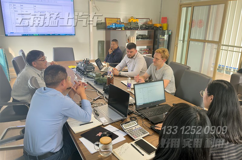 ? ? 今年10月底,一位來自俄羅斯的客戶通過網上聯系到我們,表示急需采購一批四驅和六驅越野卡車,并將技術要求告訴我們。我公司當天加班完成了給客戶的方案框架,并得到了客戶的認可,但部分詳細內容仍需要面談商榷。客戶當晚訂購了俄羅斯來中國的機票,并于第二天晚上來到我公司。
