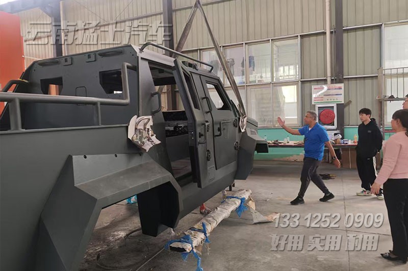 該客戶來到生產現場后,看到我公司開發的沙漠車后表示震驚,“從來沒見到過如此龐大的越野車”??吹浆F場正在研發的裝甲車后,表示該底盤與他需求的車類似,認可了我公司的研發實力,并來到辦公室溝通配置參數相關細節問題。