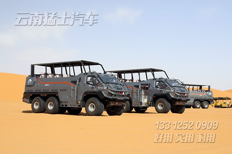 沙漠旅游沖浪車為客戶定制車型,體型高大威猛,吸引不少游客的眼球,是一款不錯的景區游樂設施。該車也可在草原、沙灘等景區內使用,不僅為景區內帶來不少游客,也豐富了游客的體驗。