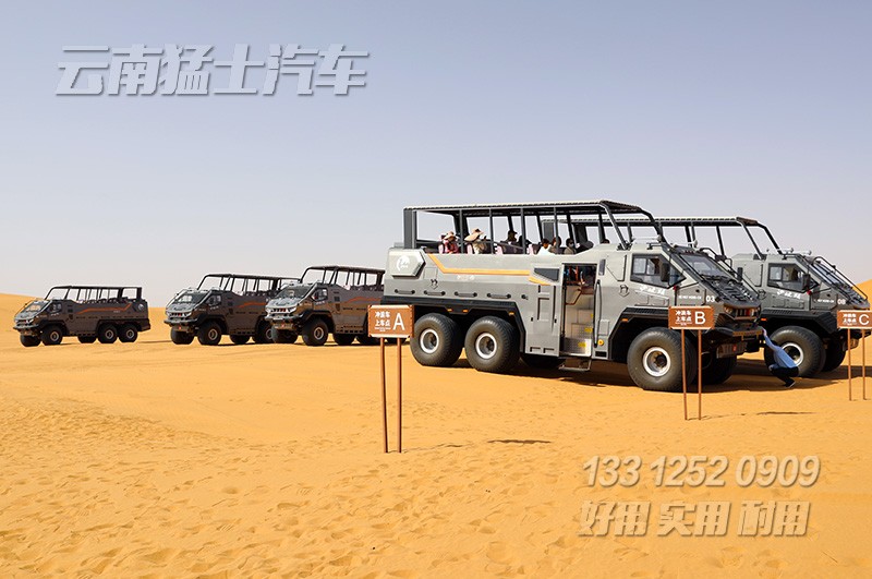 我公司近年開發的沙漠旅游車收到各個景區的熱烈追捧,單今年就已經簽下了10多臺沙漠車訂單,從去年至今交付到客戶手中的沙漠車累計達20余量,并得到各個景區的好評。五一黃金周一直是各個景區游客爆滿的時間段,也是車輛使用最頻繁的時間段,我公司開發的沙漠車由于其霸氣的外觀,吸引不少游客的眼球,成為游客必定體驗的項目之一。我公司安排技術人員和生產人員在五一期間前往各個沙漠景區,實地考察車輛的使用情況,發現問題及時解決,同時也為后續的沙漠車升級提供思路。
