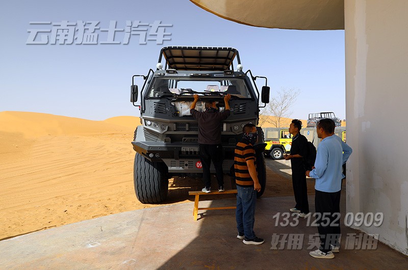 該車輛雖然體型龐大,但依然阻擋不了風沙,在長期的行駛過程中各個零部件難免受到風沙侵蝕,對一些細小部件造成一些磨損。我公司生產人員對每輛沙漠車的各個易損部位進行檢修,及時的清理底盤內的沙粒,確保五一假期期間客戶能夠順利使用。同時也將易損部位進行記錄,后續的設計也會考慮增加防護設施,增加車輛的使用壽命。