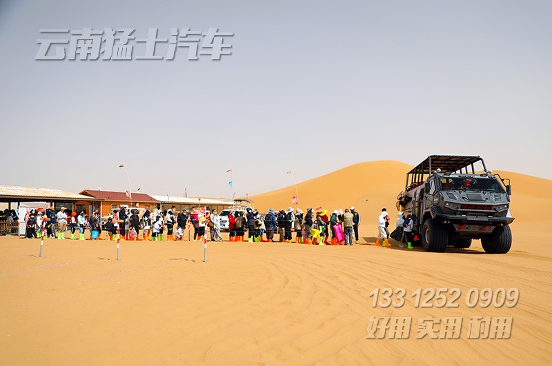 這款沙漠車體積龐大,在沙漠中別具一格,成功的吸引了游客的眼球。在沙漠中行駛時,顛簸的起伏感為游客帶來沖沙的刺激感,不少游客申請多次乘坐。期間我公司也安排售后人員在各個景區考察,為景區內的駕駛員普及沙漠車的注意事項和保養知識,同時也考察沙漠環境,為后續沙漠車的升級提供依據。